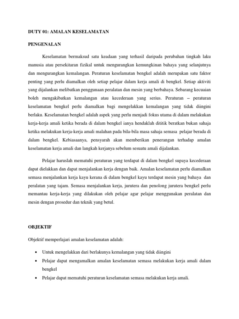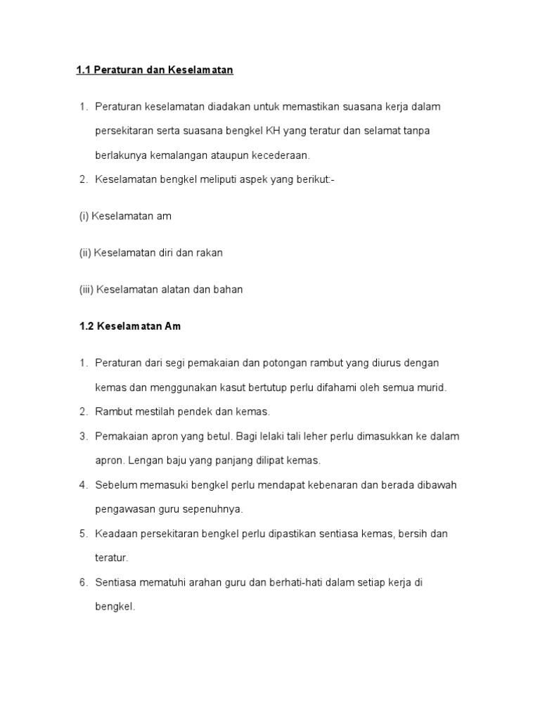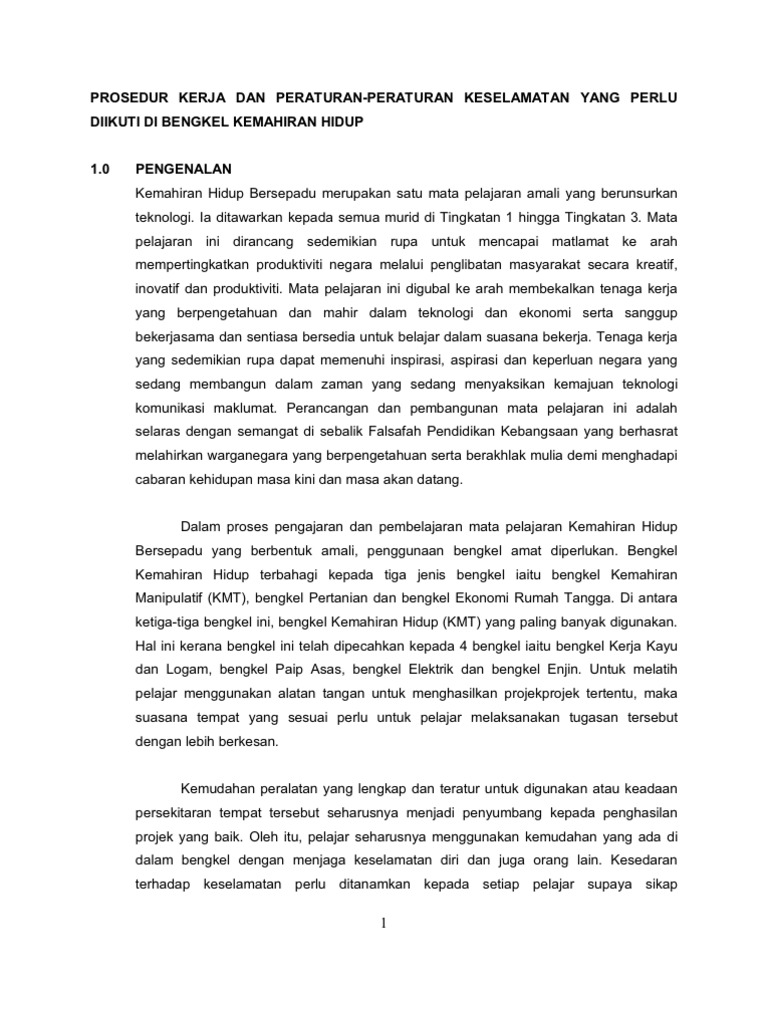 Prosedur Kerja Dan Peraturan Keselamatan Di Bengkel Kemahiran Hidup Pdf