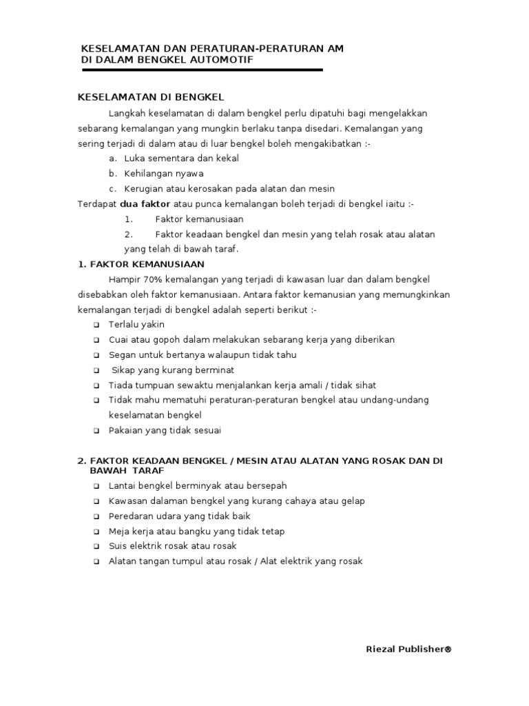 Peraturan Keselamatan Dlm Bengkel Pdf